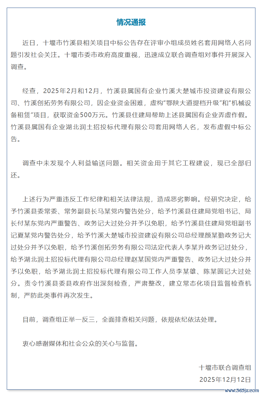 湖北十堰通报“最忙五人组”事件:多人被处分并免职湖北十堰通报“最忙五人组”事件:多人被处分并免职