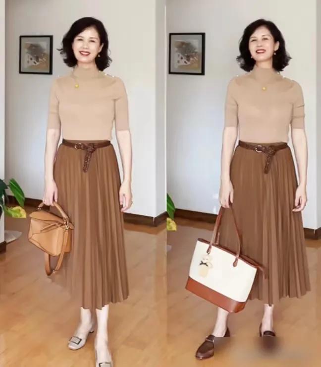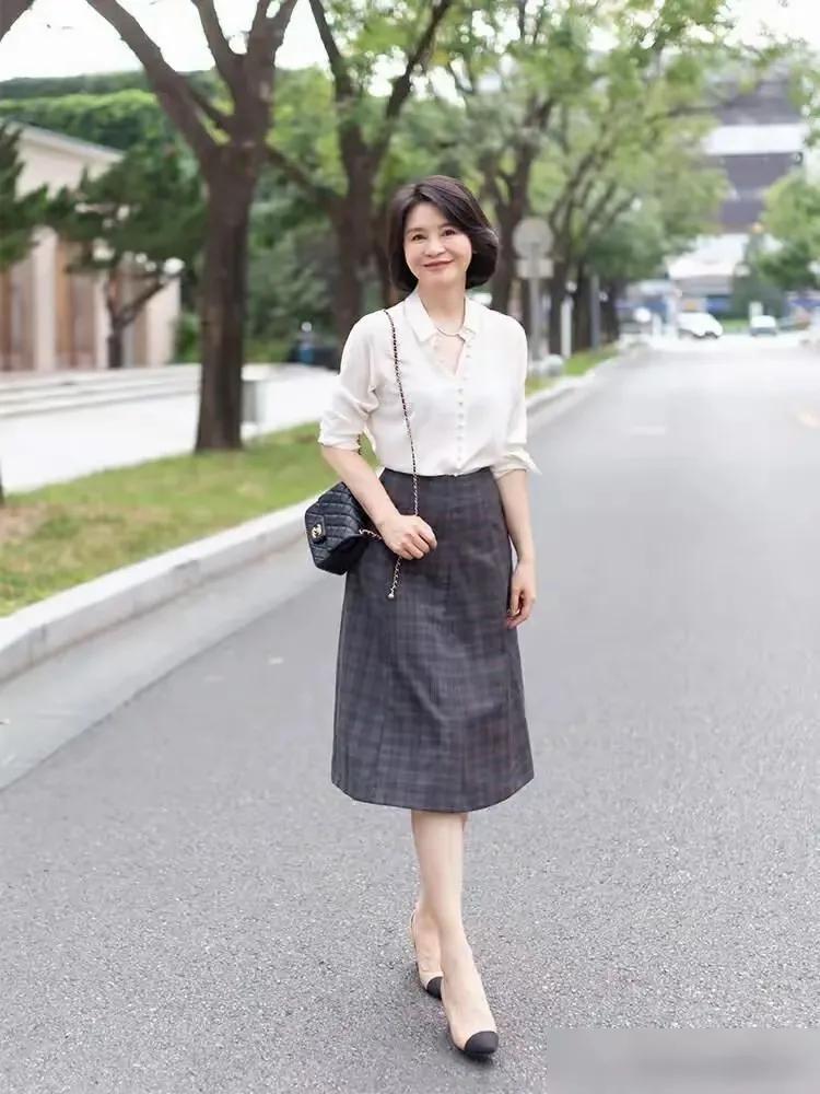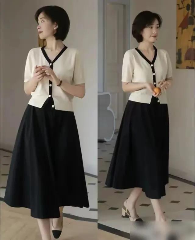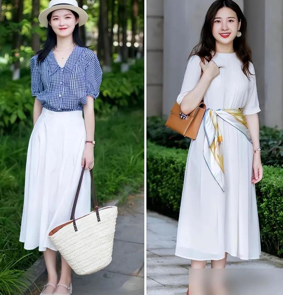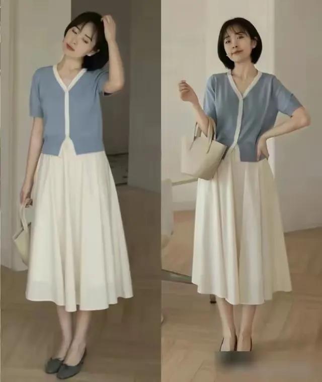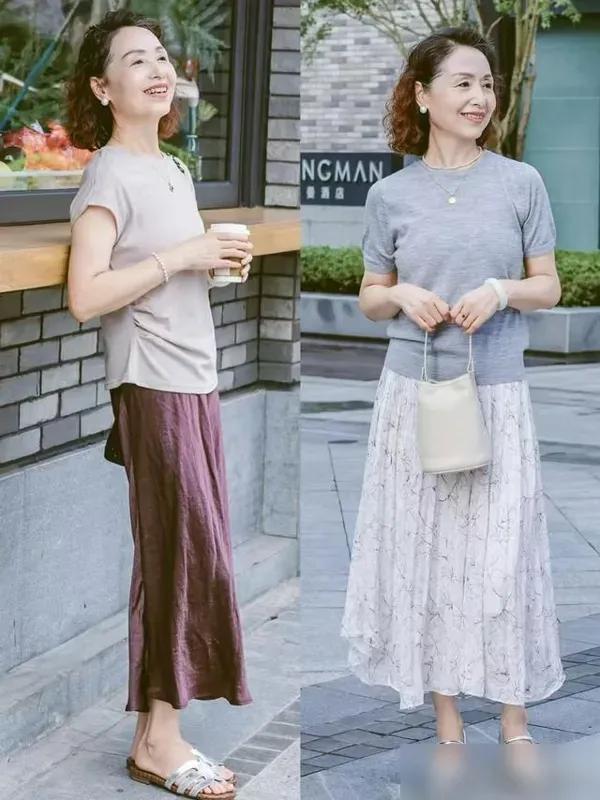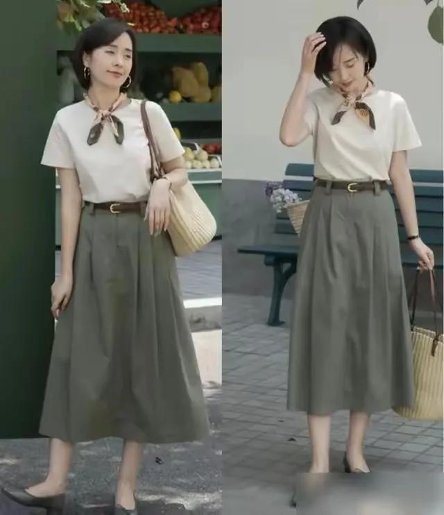选择半身裙来搭配上短袖上衣,最主要就是能很好的解决胯宽腿粗身材,发福发胖的问题