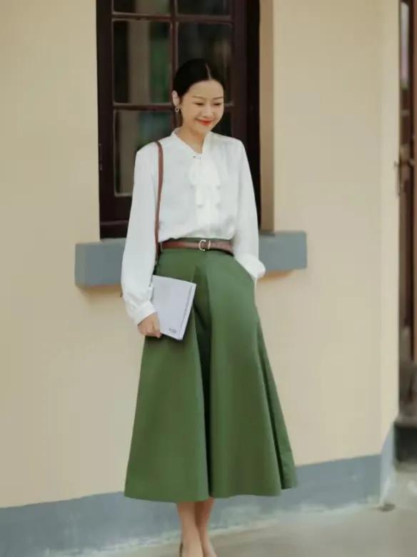 腿型不是很好的情况下,裙子长度到小腿肚的位置最佳,不过也不能太长,太长会显得拖沓,不够精神。