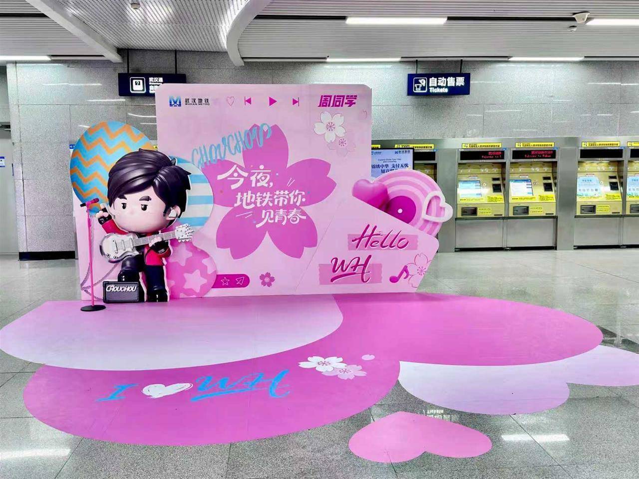 演唱会期间,武汉地铁特别推出3号线“周同学”主题专列及限量版1日票,同时,在3号线体育中心站厅内设置有巨幅打卡点,方便歌迷互动留念。