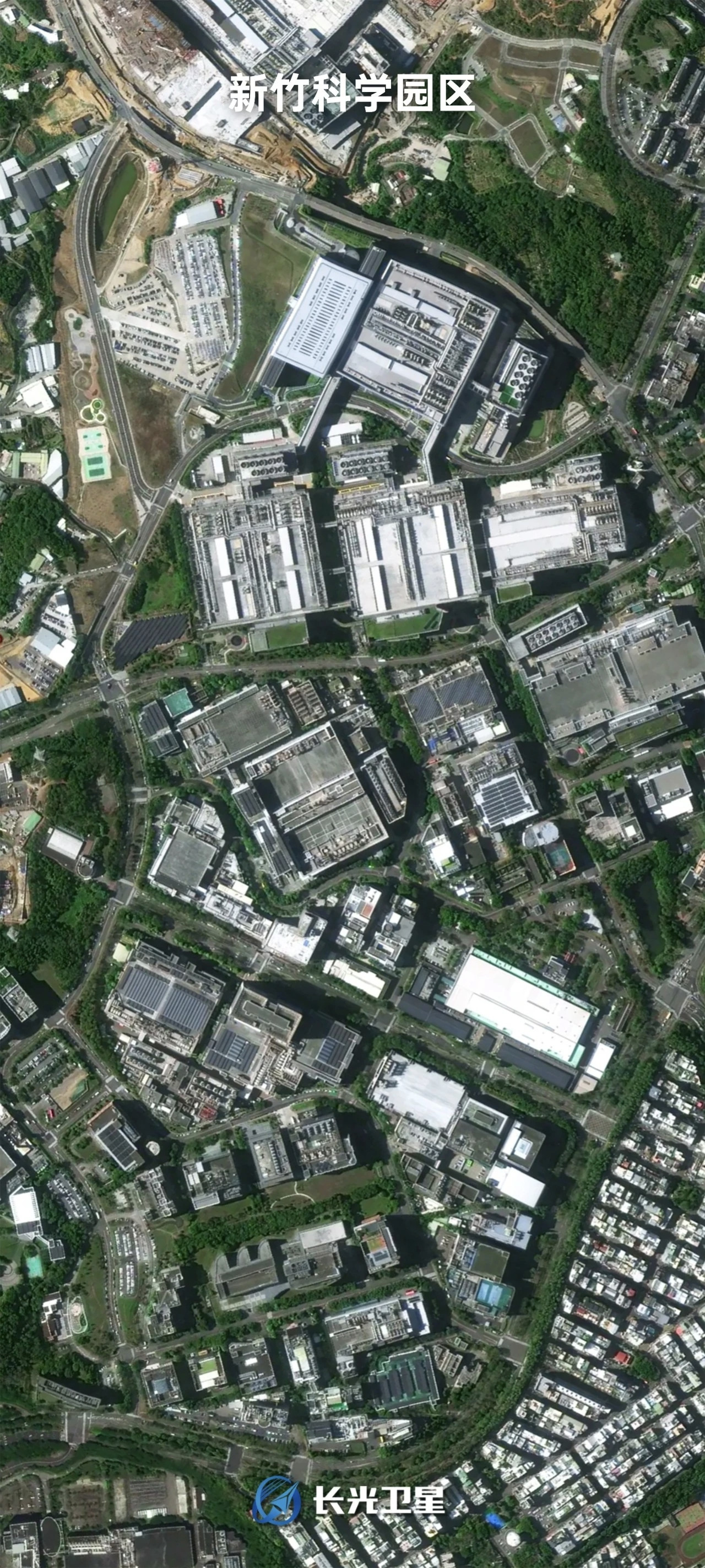 此外,新竹科学园区在卫星画面中,展现出规整的园区格局与密集的厂房建筑,反映出台湾在高科技产业方面的集中布局。南端的鹅銮鼻半岛则以鲜明的海岸线和白色灯塔成为焦点。